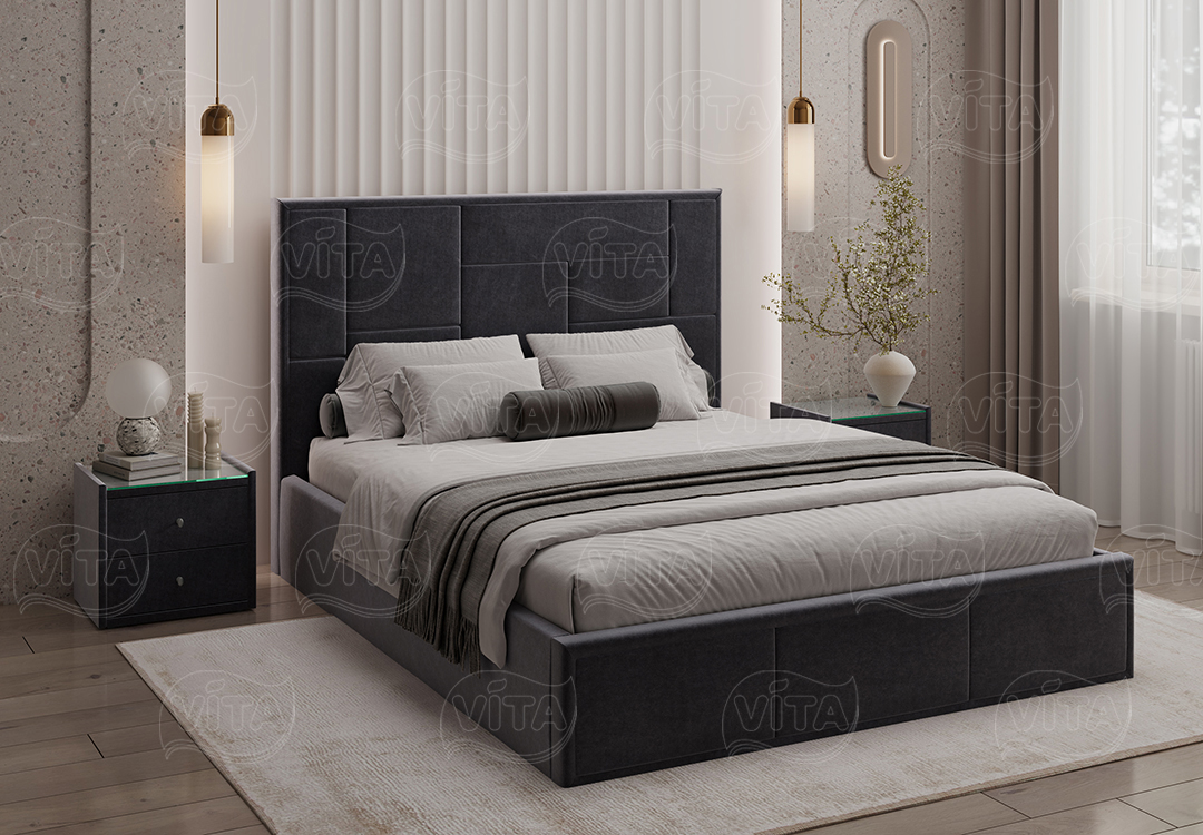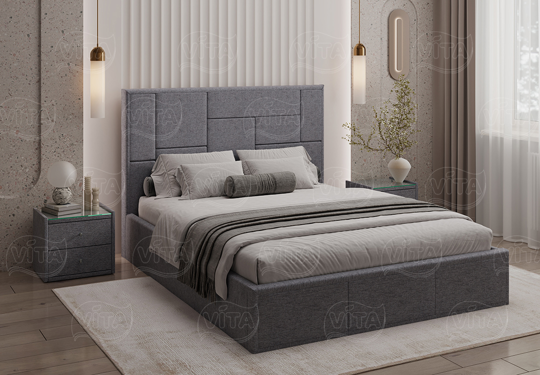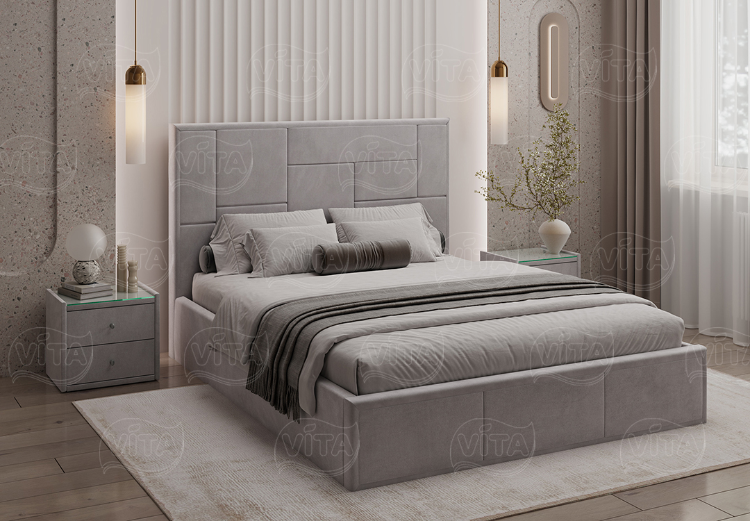 Кровать Адель с ортопедическим основанием и механизмом подъема. Изящный дизайн и отличное качество, которые слились в гармоничном тандеме. Асимметричный орнамент изголовья кровати зачарует своей грациозной простотой.