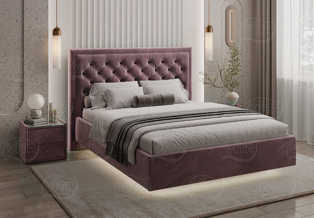 Кровать «Наоми» — идеальный выбор для спальни, объединяющий стиль и комфорт. Оригинальное изголовье с каретной стяжкой придаёт торжественность и долговечность.