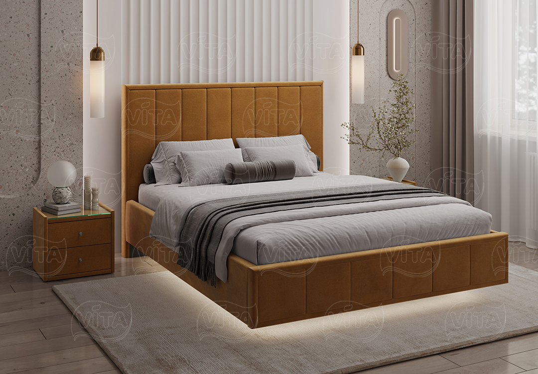 Кровать “Николь” парящая – воплощение стиля и роскоши. Вертикальная стежка на изголовье создаёт выразительный образ и визуально увеличивает пространство Вашей спальни по высоте.