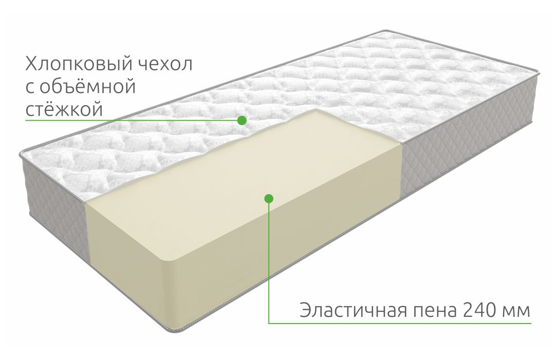 Высокий анатомический матрас Orto 1 из цельного блока эластичной пены. Чехол из хлопковой ткани с объёмной стёжкой на 200 гр. холкона приятен на ощупь и внешний вид.